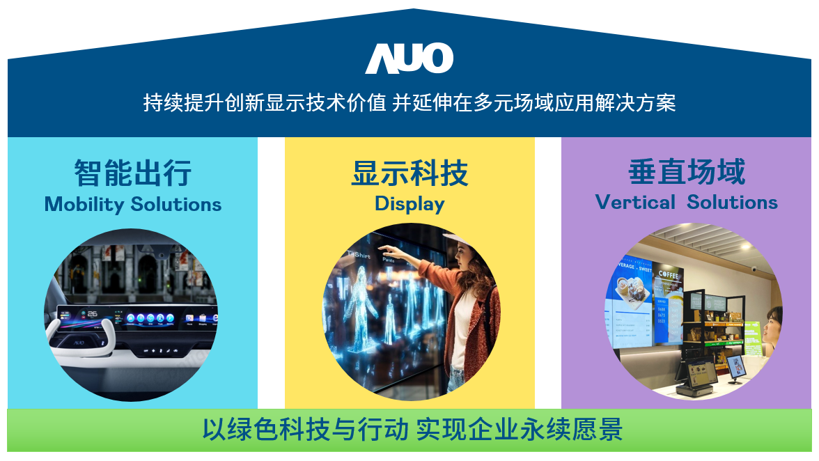 我们持续推动「双轴转型」,在精进显示技术附加价值(Go Premium),与深化垂直市场应用(Go Vertical)的策略下,对应AG旗舰厅的优势竞争力与趋势,我们奠定显示科技、智慧移动、垂直场域三大永续营运支柱,在显示技术领域的根基之上,延伸布局多元场域应用解决方案。将先进显示科技助力智慧移动及垂直场域发展,并以绿色科技与行动为实践,在转型之路上贯彻永续经营之愿景。